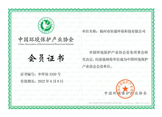 Membership certificate of China Environmental Protection Industry Association