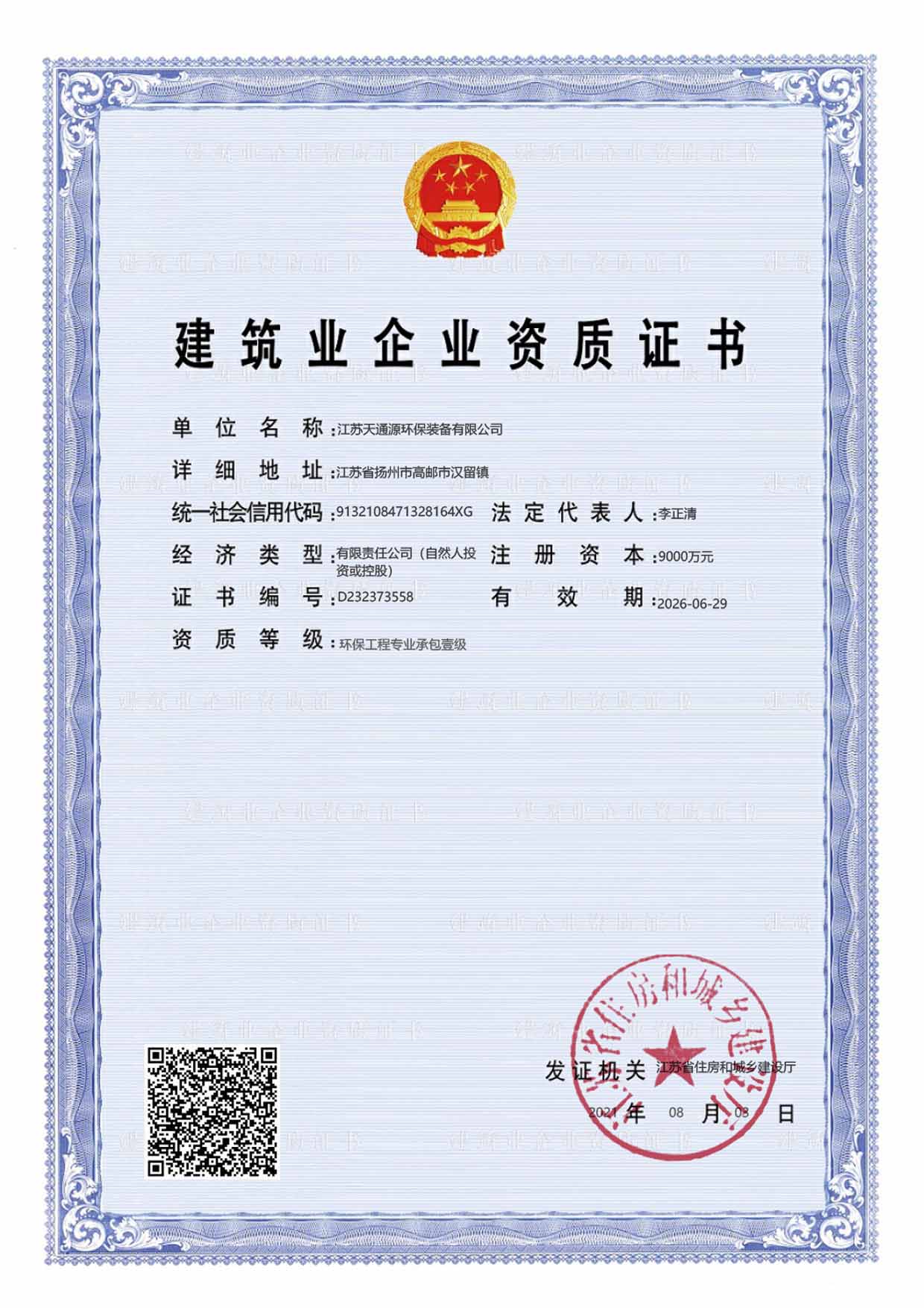 環(huán)保工程專業(yè)承包一級(jí)證書