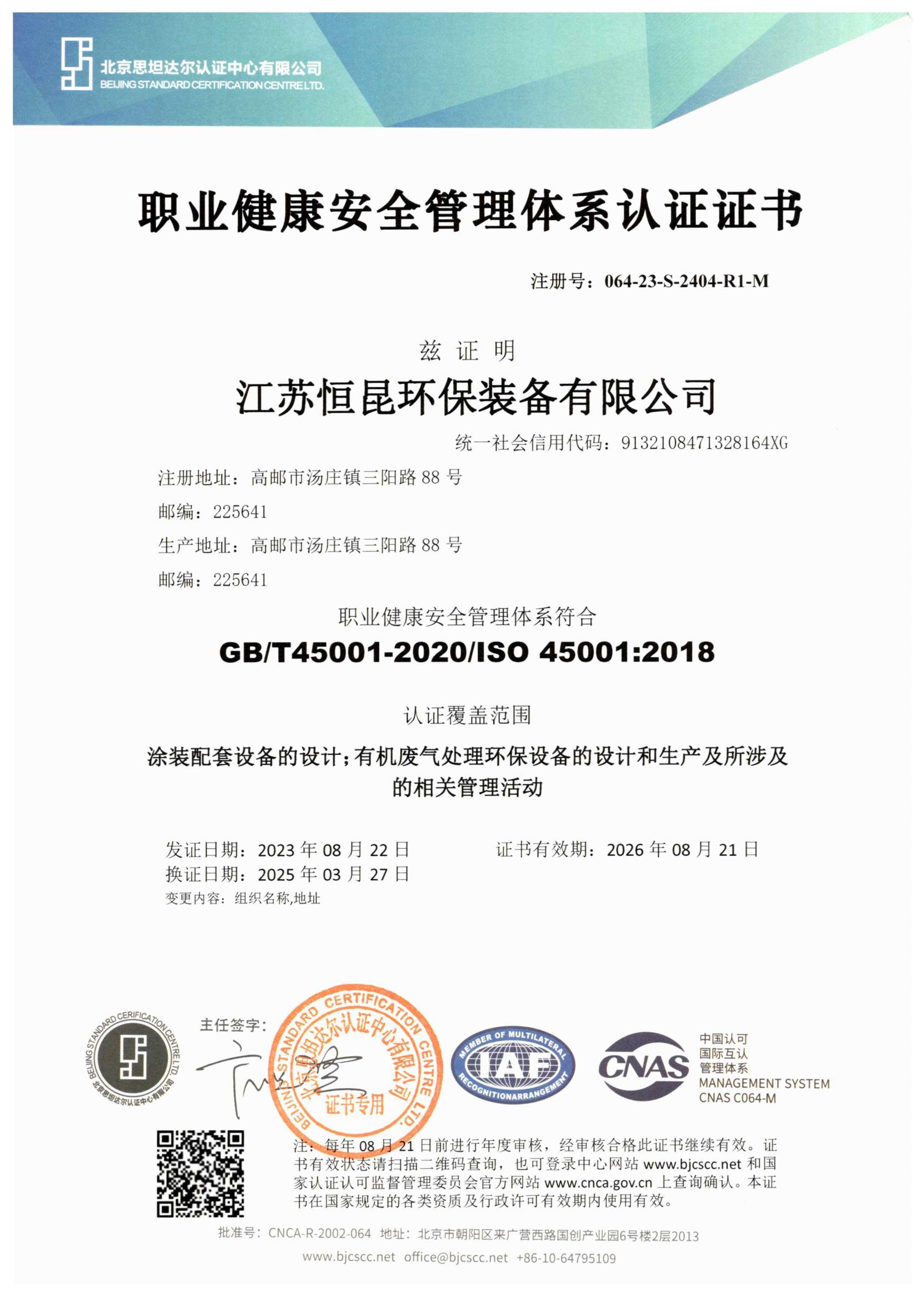ISO18001職業(yè)健康安全管理體系認(rèn)證證書